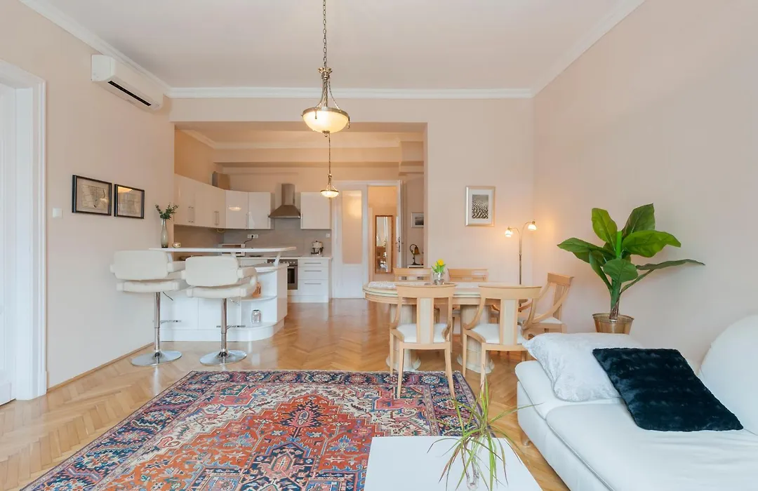Located in the 06. Terezvaros district, the 150 m² View To The Roofs Luxury Apartment With 2 Bedrooms apartment is nearly 9 minutes' walk from St. Stephen's Basilica and 2.3 km from Iharos Sandor Athletic Center of Margaret Island, which is recommended to be visited by sports fans.